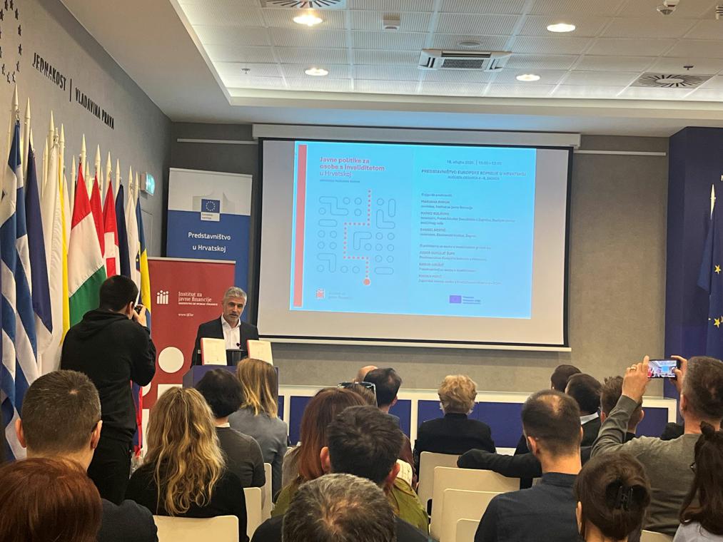The book was presented by editor Marijana Bađun and reviewers Marko Buljevac from the Study Centre for Social Work at the Faculty of Law, University of Zagreb, and Danijel Nestić from the Institute of Economics, Zagreb. Speakers on disability policies included Judita Cuculić Župa from the European Commission Representation in Croatia, the Ombudsman for Persons with Disabilities Darijo Jurišić, and Marica Mirić from the Croatian Association of Disability Organizations – SOIH.