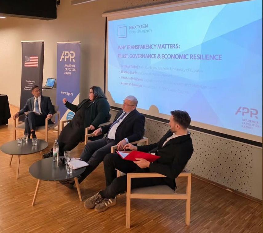 Stanić took part in a panel discussion “Why Transparency Matters: Trust, Governance and Economic Resilience”, alongside Kristian Turkalj (Catholic University of Croatia) and Vedrana Pribičević (Zagreb School of Economics and Management), with the panel moderated by Ameet Kabrawala from the U.S. Embassy.