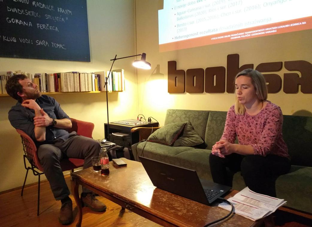 Naša doktorandica Simona Prijaković predstavila je 18. siječnja 2023. doktorsko istraživanje "Utjecaj razine online proračunske transparentnosti hrvatskih lokalnih jedinica na odabrane političke i ekonomske varijable" na Zagreb PhD Caféu #20 u Booksi. Istraživanje se provodi u sklopu projekta Isplati li se transparentnost? Politički i socioekonomski učinci transparentnosti proračuna lokalnih jedinica u Hrvatskoj koji financira Hrvatska zaklada za znanost (HRZZ).