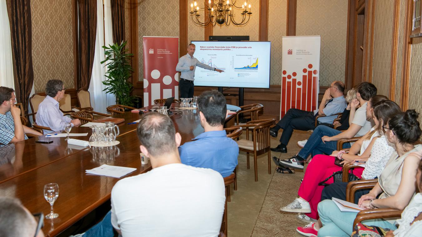 The Institute of Public Finance and the Croatian National Bank organized a presentation on June 4, 2025, based on an article published in journal Public Sector Economics in which Mislav Brkić (Croatian National Bank) analyses the impact of the European Central Bank’s (ECB) restrictive monetary policy on the profitability of banks in the euro area during the 2022–2023 period.