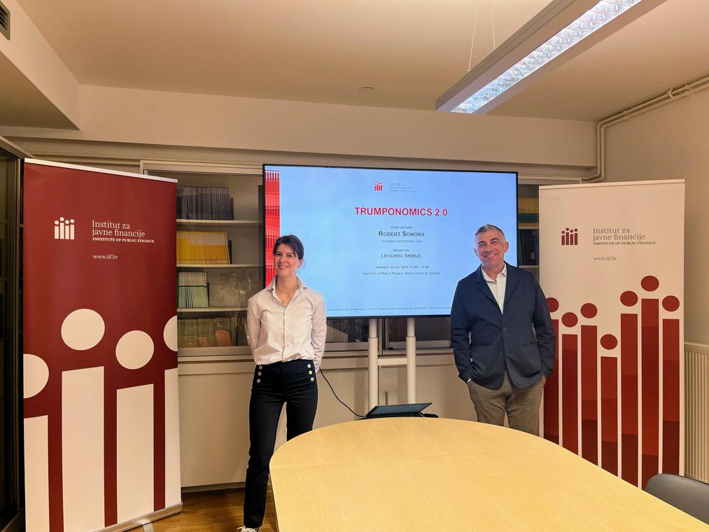 On Thursday, 15 May 2025, the Institute of Public Finance hosted a guest lecture by Robert Sonora from the University of Montana, U.S. His presentation focused on how the return of Donald Trump to the political stage is influencing global trade and economic policy.