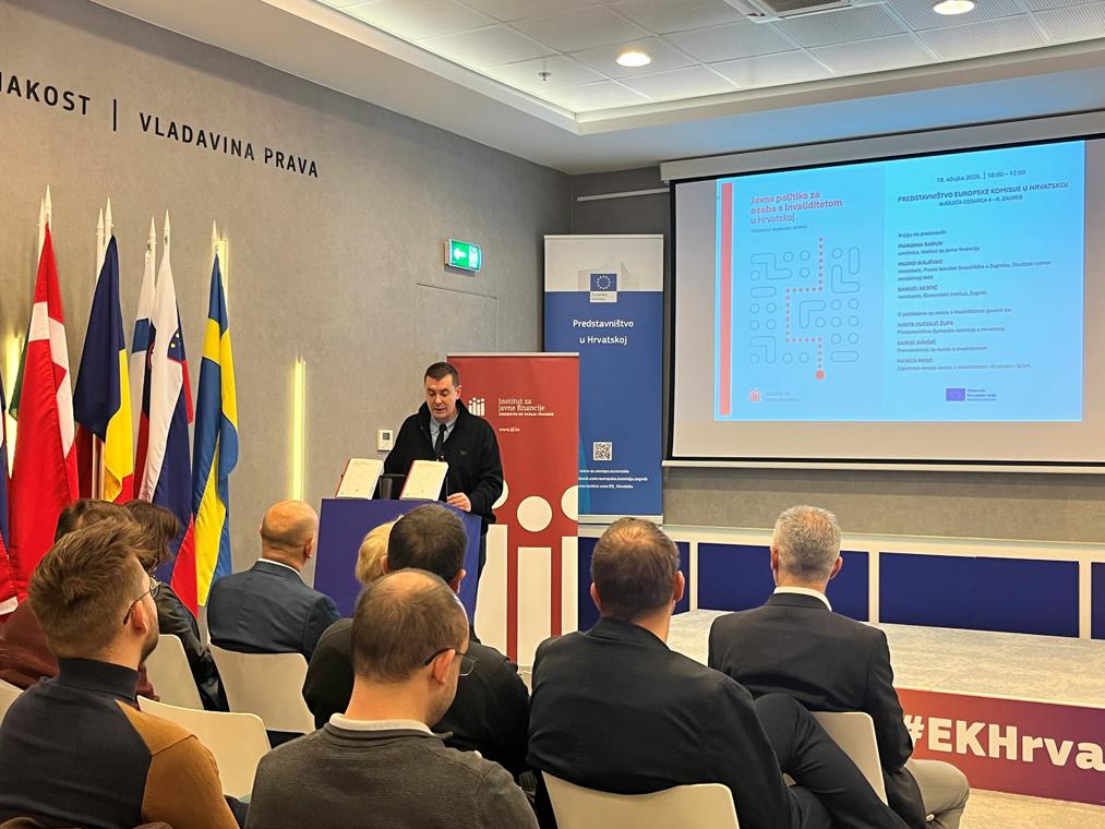 At the Representation of the European Commission in Croatia, the book Javne politike za osobe s invaliditetom u Hrvatskoj (Public Policies for Persons with Disabilities in Croatia), published by the Institute of Public Finance and edited by Marijana Bađun, was presented on March 18, 2026. The book offers a critical, interdisciplinary analysis of policies affecting the daily lives of 17.5% of Croatia’s population. Although significant progress has been made over the past two decades in the legislative and strategic framework for persons with disabilities, the book warns that the biggest challenge remains their implementation in practice, particularly in the areas of education, employment, and poverty reduction.