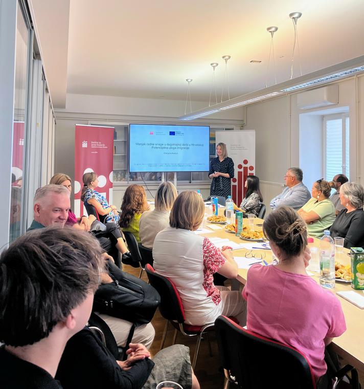 On 10 June 2025, the Institute of Public Finance hosted a roundtable entitled “Who will care for older people? Croatia and Slovenia in the global care chain”. The discussion focused on the similarities and differences between the Croatian and Slovenian long-term-care (LTC) systems and the possible solutions to the labour shortages in the sector in both countries. Introductory presentations were given by Majda Hrženjak, a researcher at the Peace Institute – Institute for Contemporary Social and Political Studies in Ljubljana, and Marijana Bađun, a senior research associate at the Institute of Public Finance.