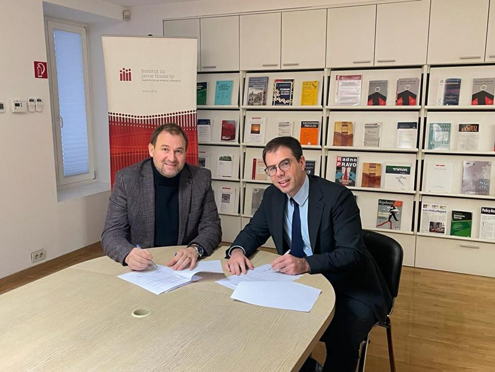 On December 5, 2023, Vjekoslav Bratić, Director of the Institute of Public Finance, and Vinko Muštra, Dean of the Faculty of Economics, University of Split, signed the Cooperation Agreement that outlines goals and promotes collaboration and knowledge exchange in scientific and research areas of shared interest.