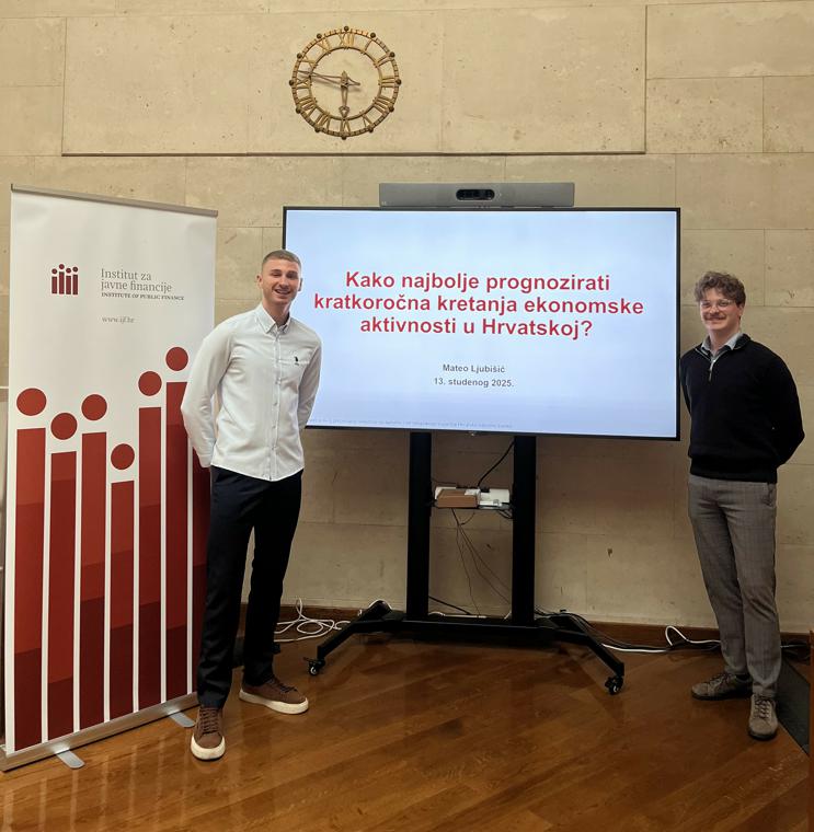 U organizaciji Instituta za javne financije i Hrvatske narodne banke, Mateo Ljubišić, stručni suradnik u Direkciji za ekonomske analize HNB-a, 13. studenoga 2025. predstavio je članak objavljen u časopisu Public Sector Economics, u kojem testira različite modele prognoziranja gospodarske aktivnosti u Hrvatskoj.