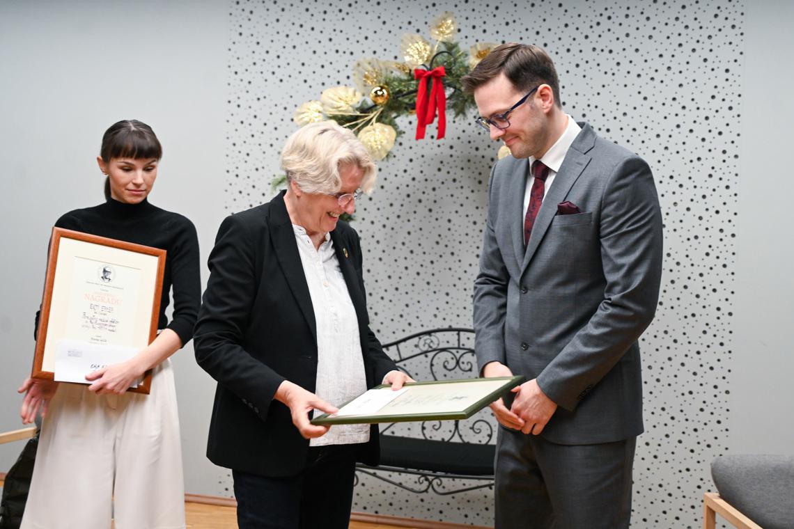 U studentskoj kategoriji, 2.000 eura i diplomu dobila je Enja Erker s Fakulteta za matematiku i fiziku, Sveučilišta u Ljubljani za rad „Forecasting medical inflation in the European Union using the ARIMA model“.