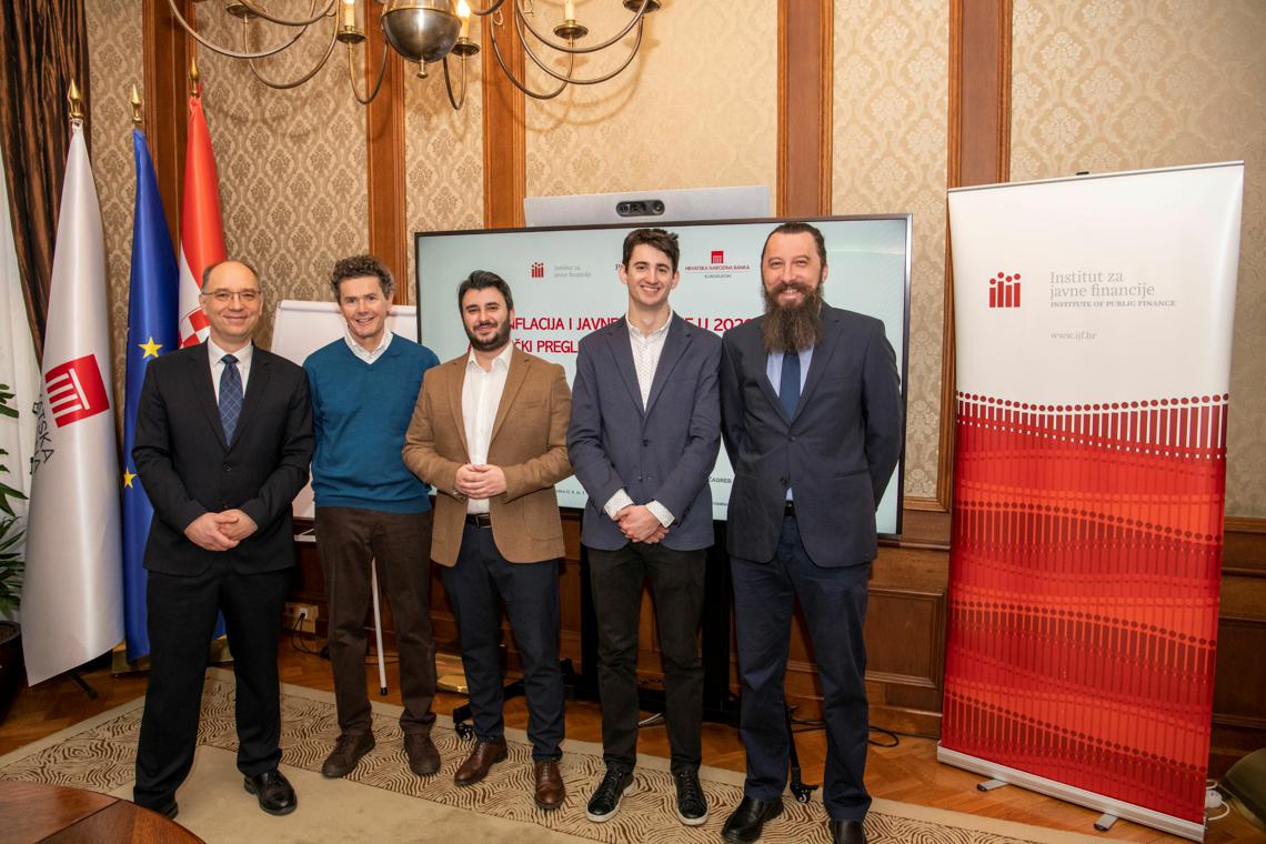 Dubravko Mihaljek iz Banke za međunarodna plaćanja i Frane Banić, Dominik Ivan Pripužić i Pave Rebić iz Hrvatske narodne banke predstavili su danas analitički pregled učinaka inflacije na javne financije i empirijsku studiju o učincima inflacije na fiskalne pozicije u Hrvatskoj na zajedničkom seminaru Instituta za javne financije i Hrvatske narodne banke (HNB) održanom u HNB-u. Izlaganja su se oslanjala na njihove radove objavljene u tematskom broju časopisa Public Sector Economics (br. 4/2023) pod naslovom Inflation and public finances in the 2020s.